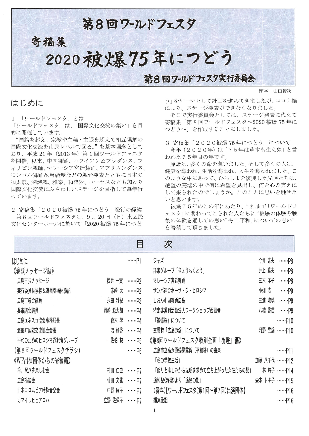 そこで実行委員会として、「第8回ワールドフェスタ広島~2020 被爆 75につどう~」を作成することにしました。